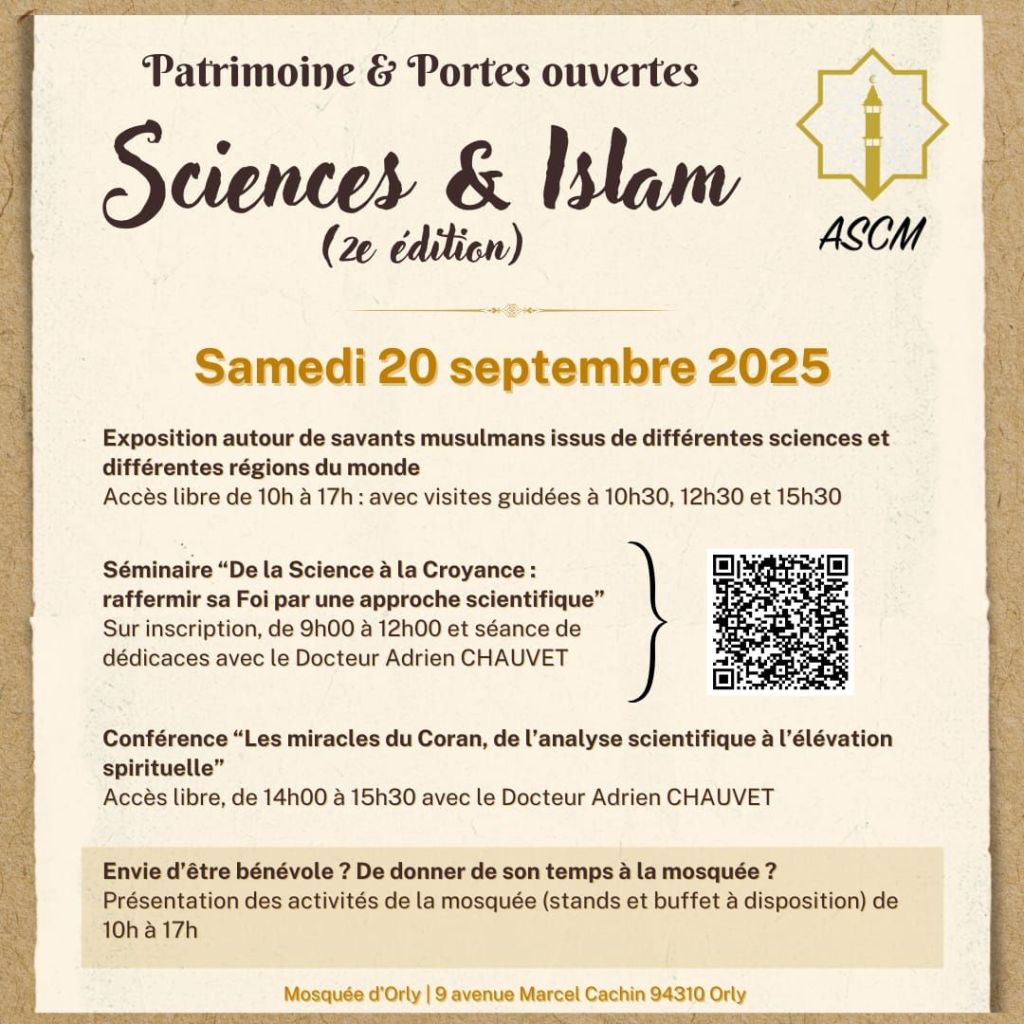I’m happy to announce that I’ll be giving a couple of conferences in Paris this Saturday, Sept. 20th, at the Grand mosque in Orly. iA