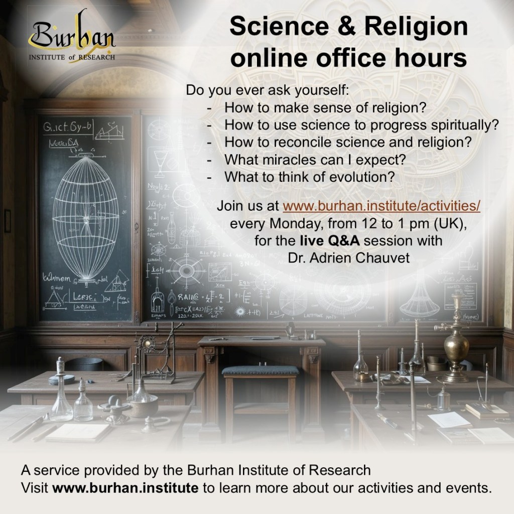 Every Monday, from 12 to 1pm, join a live Q&A session with Dr. Adrien Chauvet to discuss the interplay between science and religion.